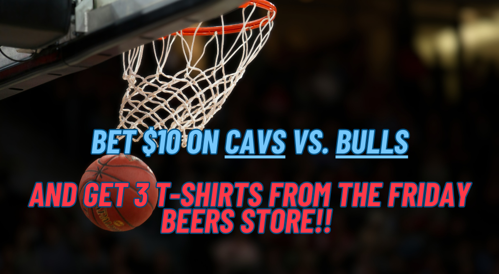 Place a $10 bet on Cavaliers VS Bulls & GET 3 T-Shirts From The Friday Beers Store! (AN ACTUAL BET MUST BE PLACED TO RECEIVE YOUR T-SHIRTS)