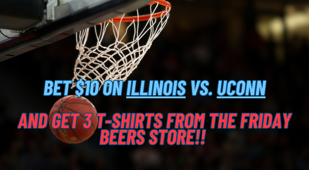 Place a $10 bet on Illinois VS UConn & GET 3 T-Shirts From The Friday Beers Store!(AN ACTUAL BET MUST BE PLACED TO RECEIVE YOUR T-SHIRTS)
