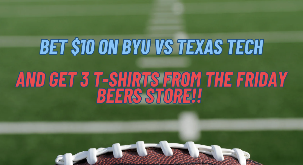 Place a $10 bet on BYU vs Texas Tech & GET 3 T-Shirts From The Friday Beers Store! (AN ACTUAL BET MUST BE PLACED TO RECEIVE YOUR T-SHIRTS)