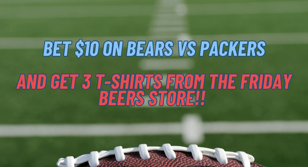 Place a $10 bet on Bears vs Packers & GET 3 T-Shirts From The Friday Beers Store! (AN ACTUAL BET MUST BE PLACED TO RECEIVE YOUR T-SHIRTS)