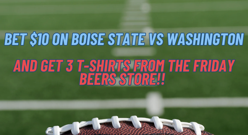 Place a $10 bet on Boise State vs Washington & GET 3 T-Shirts From The Friday Beers Store! (AN ACTUAL BET MUST BE PLACED TO RECEIVE YOUR T-SHIRTS)