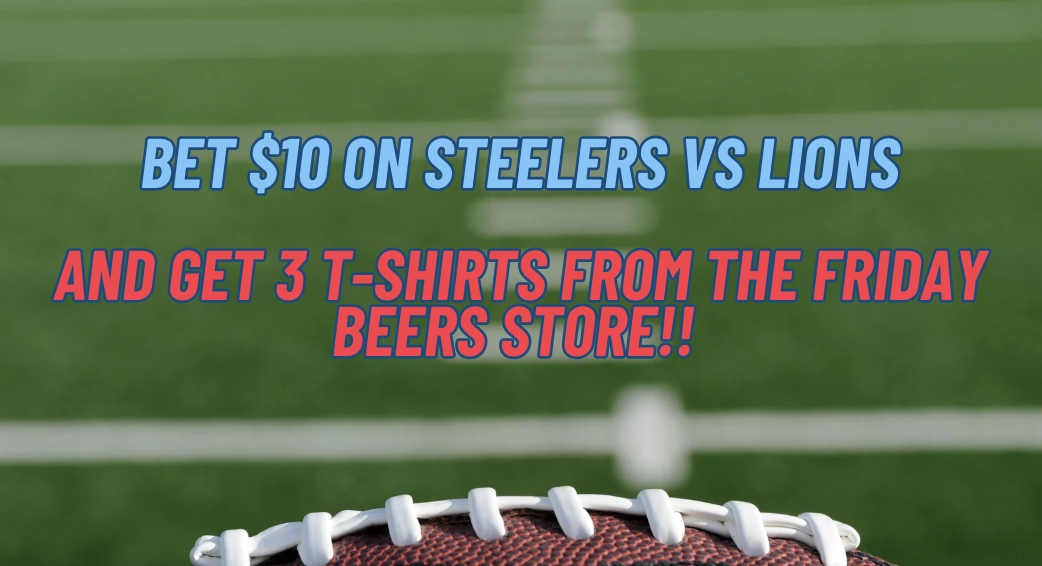 Place a $10 bet on Steelers vs Lions & GET 3 T-Shirts From The Friday Beers Store! (AN ACTUAL BET MUST BE PLACED TO RECEIVE YOUR T-SHIRTS)