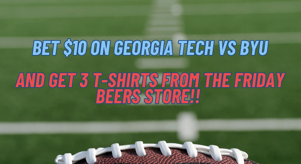 Place a $10 bet on Georgia Tech vs BYU & GET 3 T-Shirts From The Friday Beers Store! (AN ACTUAL BET MUST BE PLACED TO RECEIVE YOUR T-SHIRTS)