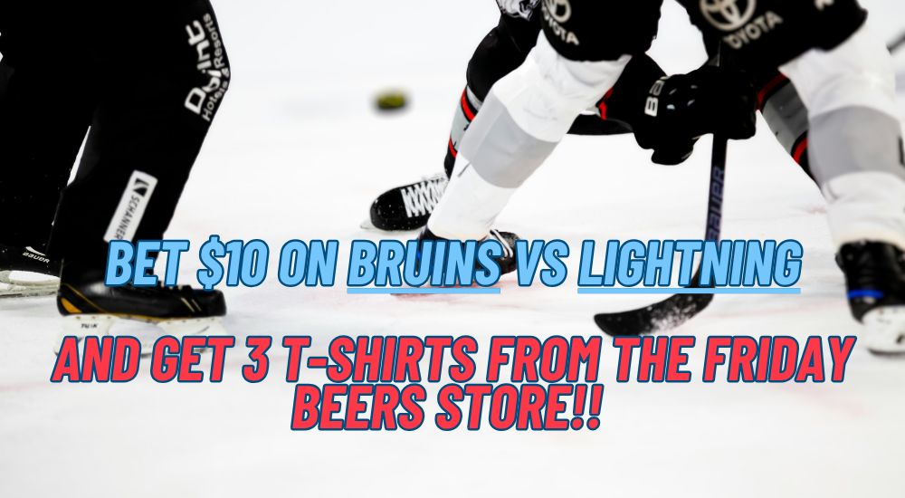 Place a $10 bet on Bruins VS Lightning & GET 3 T-Shirts From The Friday Beers Store!(AN ACTUAL BET MUST BE PLACED TO RECEIVE YOUR T-SHIRTS)