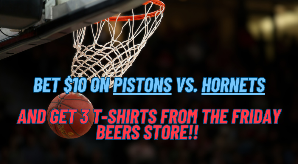 Place a $10 bet on Pistons VS Hornets & GET 3 T-Shirts From The Friday Beers Store!(AN ACTUAL BET MUST BE PLACED TO RECEIVE YOUR T-SHIRTS)
