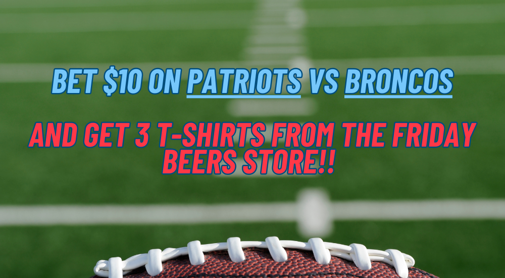Place a $10 bet on Patriots VS Broncos & GET 3 T-Shirts From The Friday Beers Store! (AN ACTUAL BET MUST BE PLACED TO RECEIVE YOUR T-SHIRTS)